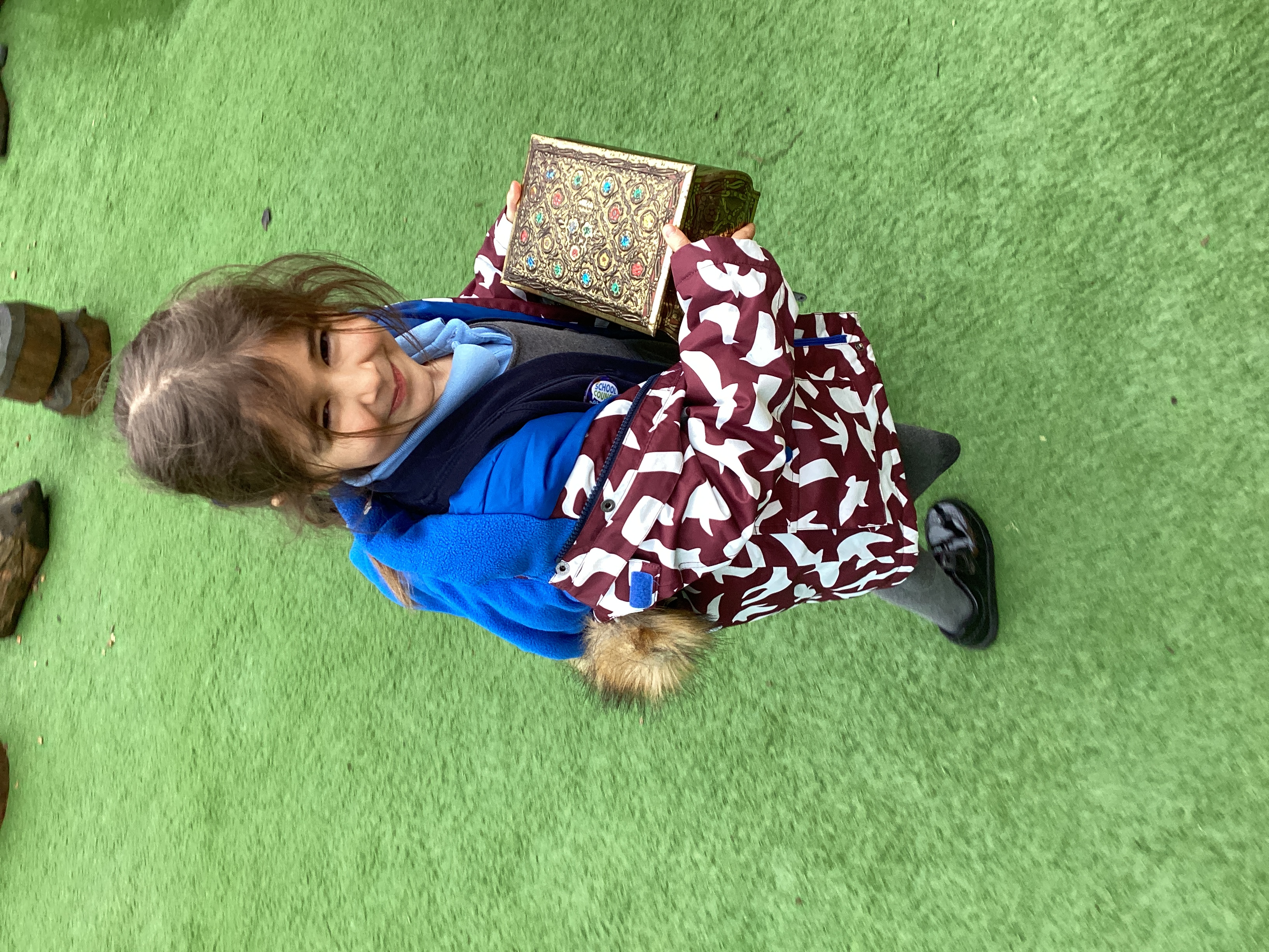 We found a treasure map and followed it. At the end we found a treasure chest with lots of treasure inside.