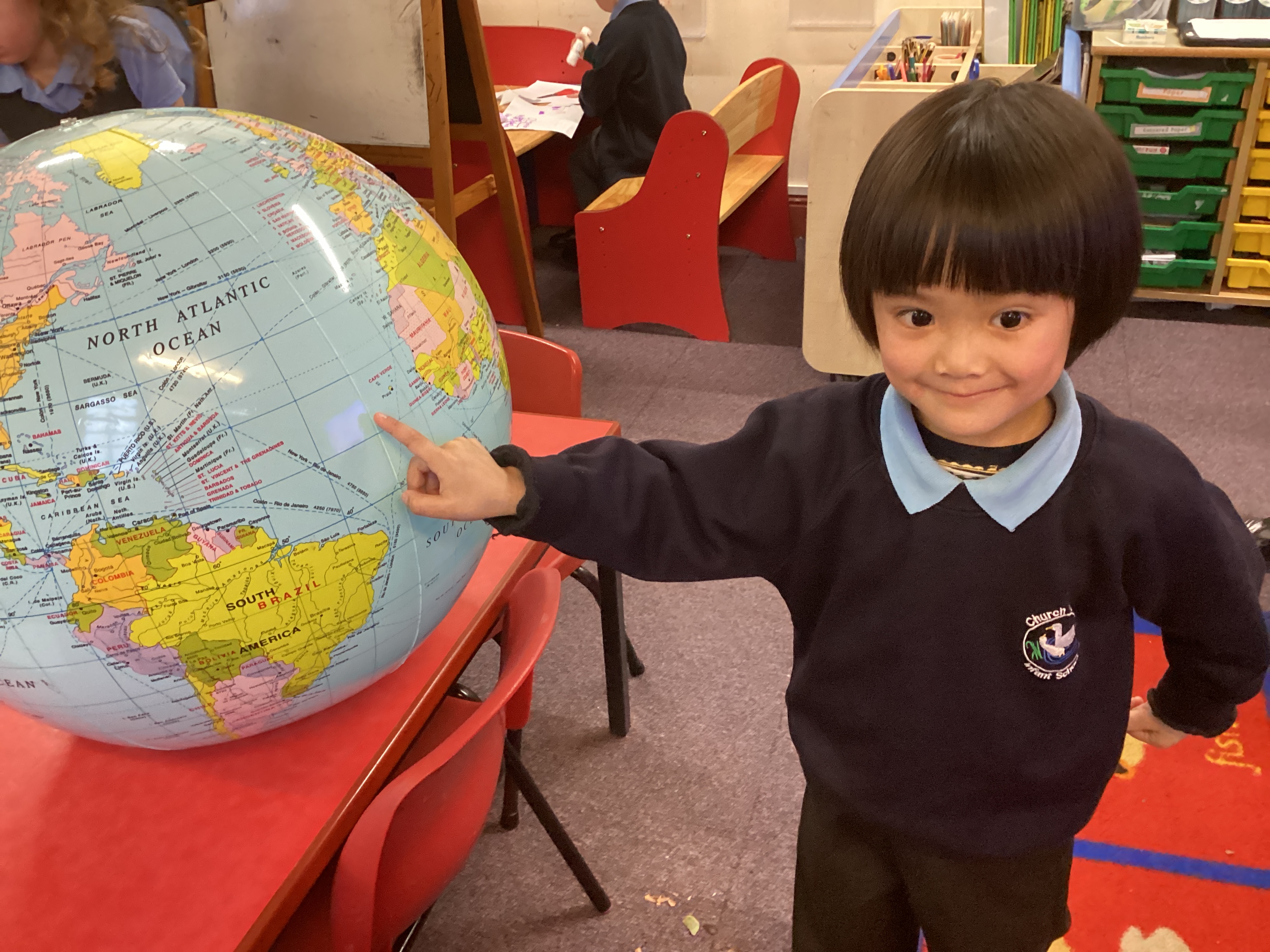 We used the globe to look at oceans and continents.