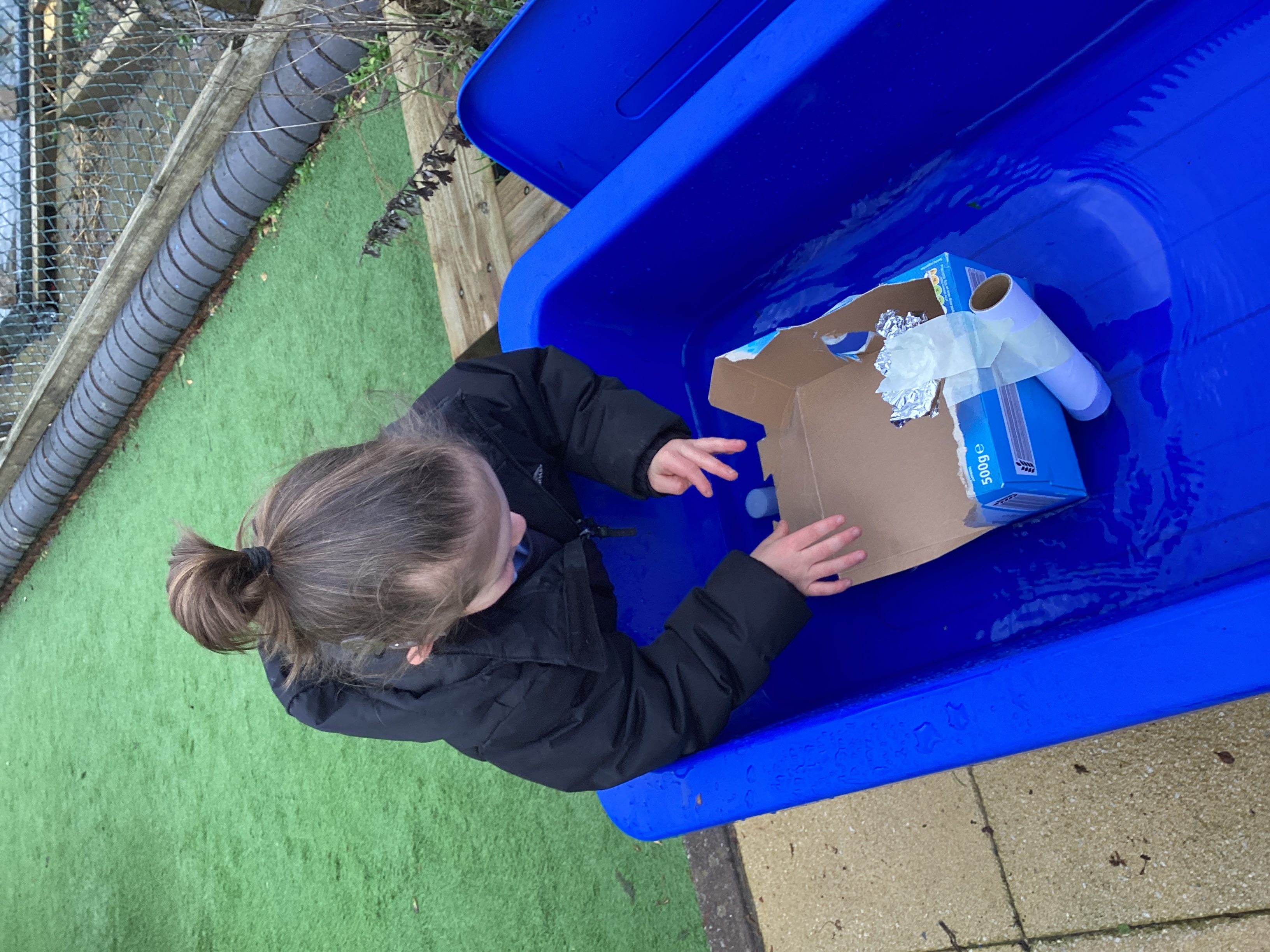 Class 1 designed boats in Design and Technology and then tested them to see if they would sink or float.